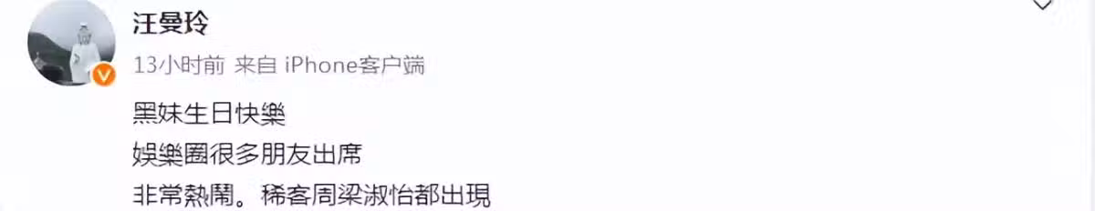 1月6日深夜,資深媒體人汪曼玲在社交網Po出一則聚餐九宮格照,並配文寫道:「黑妹,生日快樂,娛樂圈很多朋友受邀出席,非常熱鬧」,眾星齊聚港島中環星級酒店,氣氛熱絡、場面熱鬧!