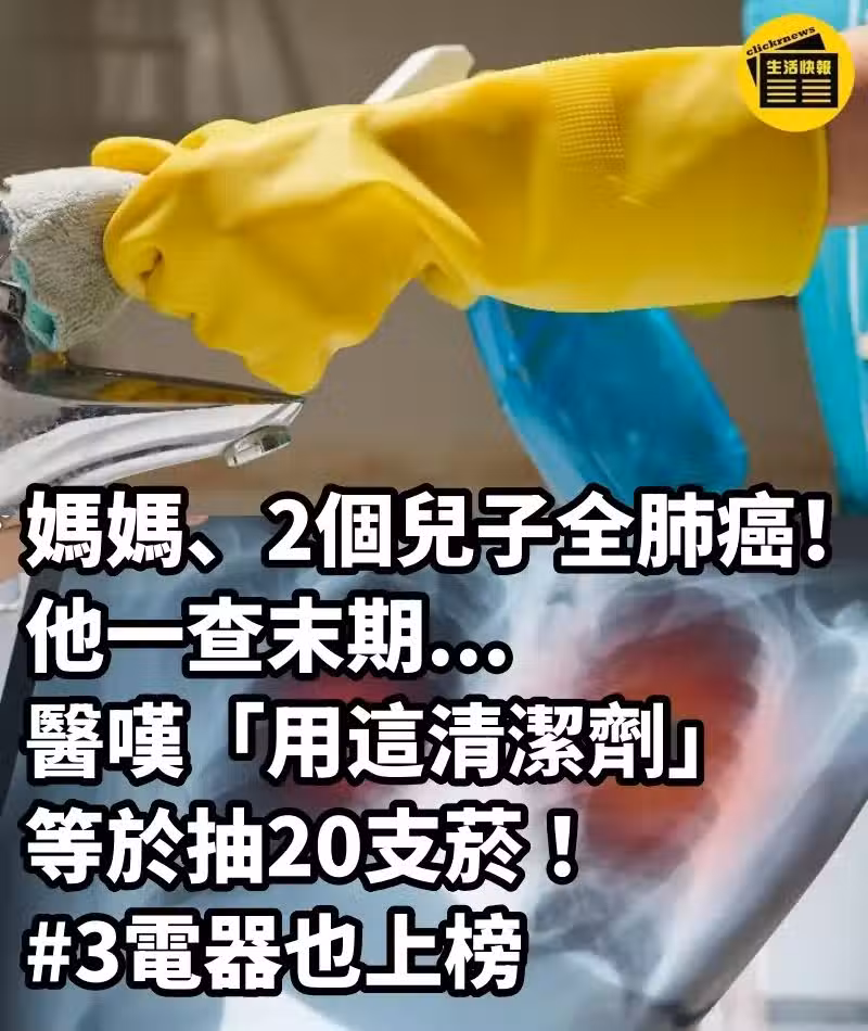 媽媽、2個兒子全肺癌!他一查末期... 醫嘆「用這清潔劑」等於抽20支煙 #3電器也上榜