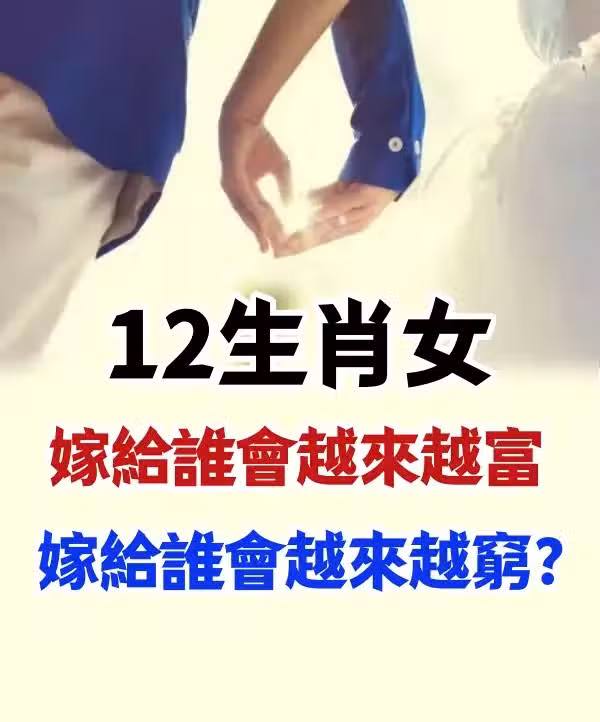 今天就來看看,12生肖女嫁給屬什麼的男人會越來越富,嫁給誰倒是可能越來越窮吧!