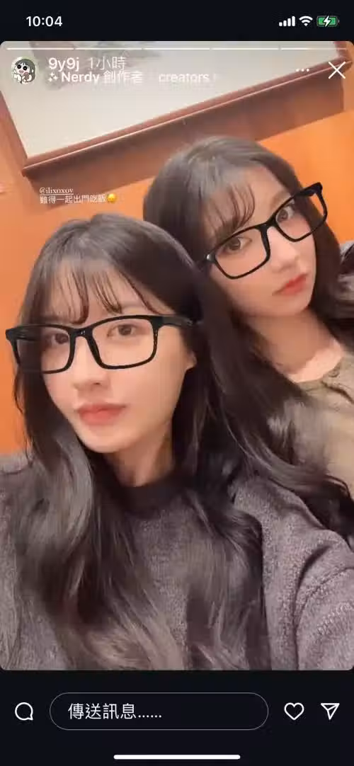 ▲一粒姐姐Joy(前)和妹妹外出用餐,姊妹倆不忘自拍留念。(圖/9y9j IG)