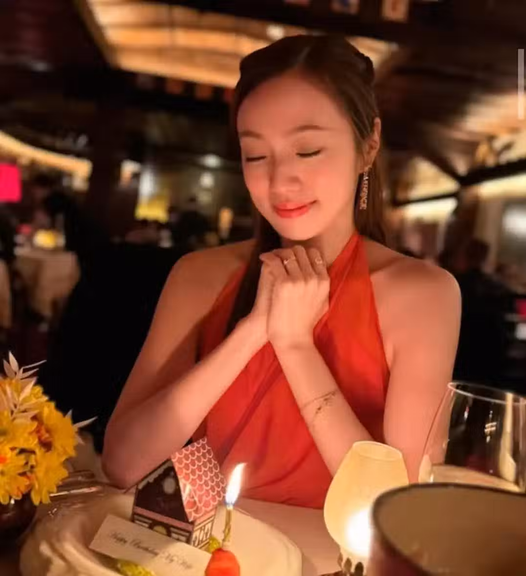 在另一張男友視角照中,見到李思欣對著蛋糕許願,滿臉幸福,對此李思欣當然也不忘發文感謝一下老公的安排,記錄下這美好的一刻。