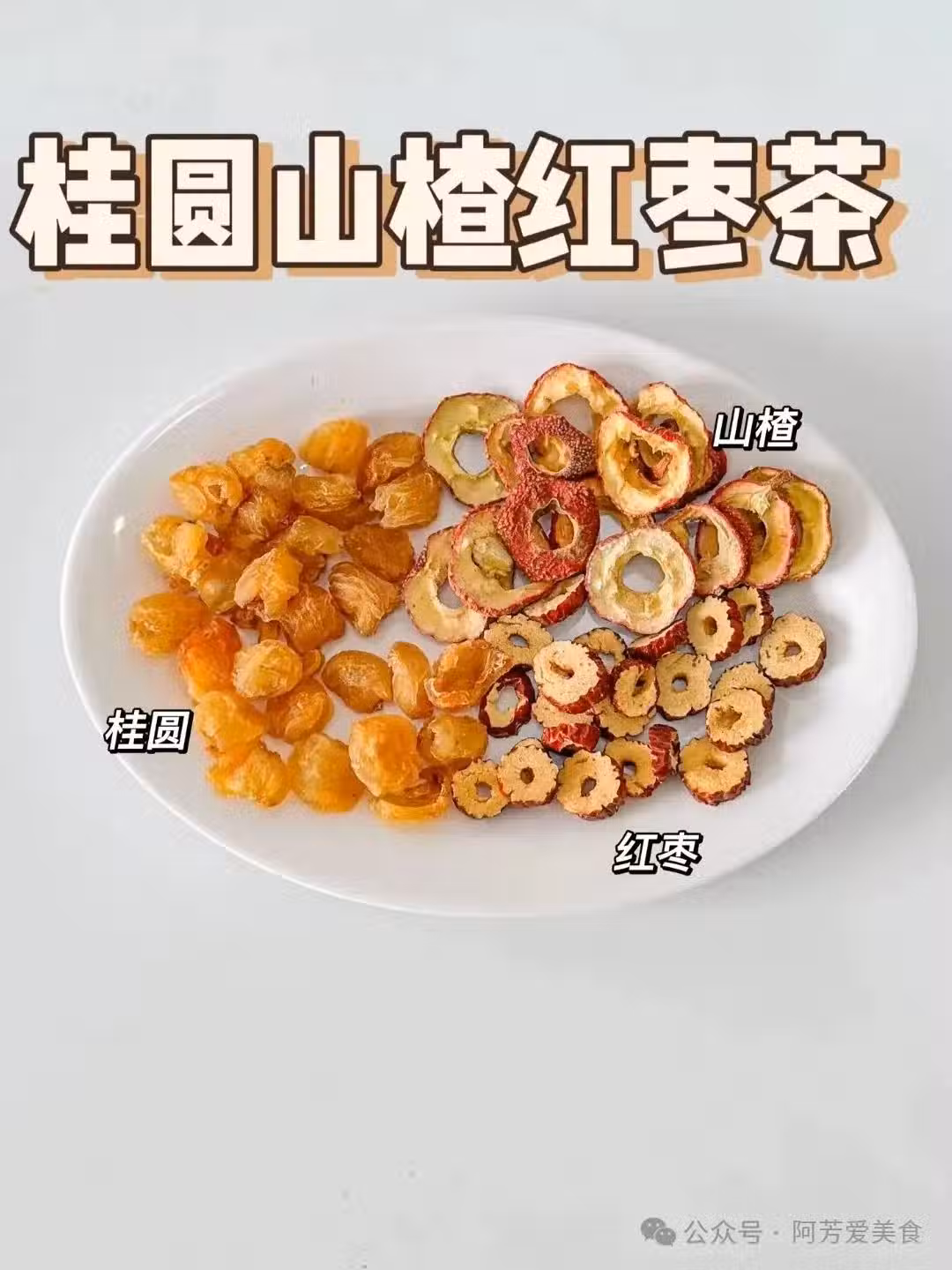 桂圓山楂紅棗茶,搭配山楂的酸甜,非常的解膩。寶子們可以放心大膽的喝噢,喜歡酸一點的山楂可以多放,甜一點的多放一點紅棗。