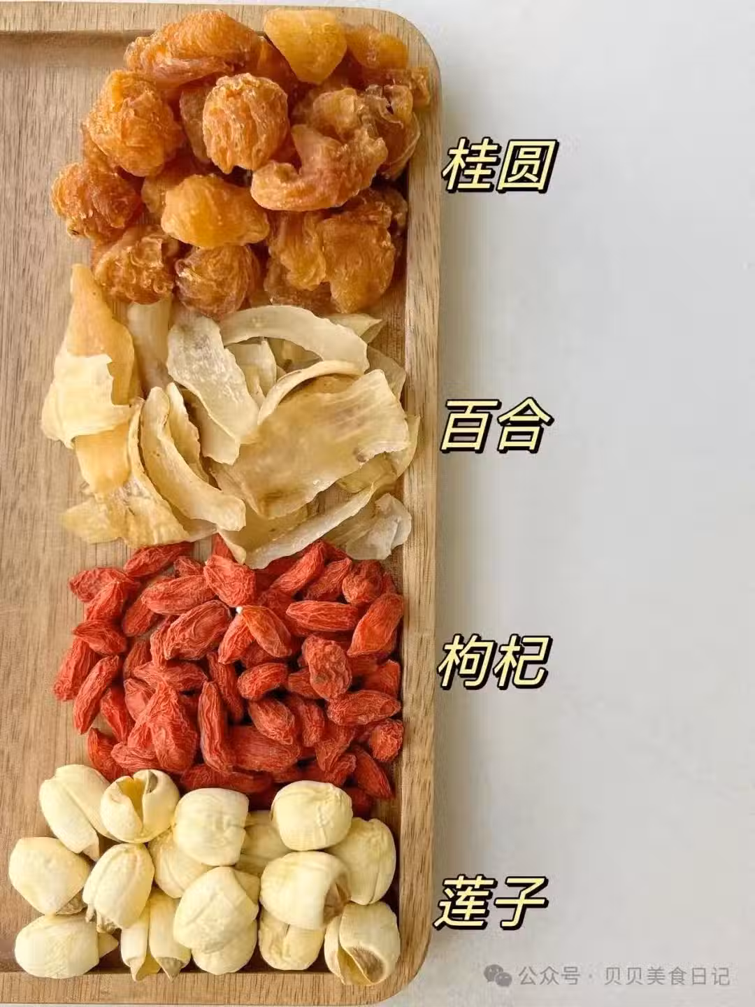1. 清洗食材:將桂圓去殼去核(如果使用帶核的桂圓乾),百合、蓮子、枸杞分別洗凈備用。
