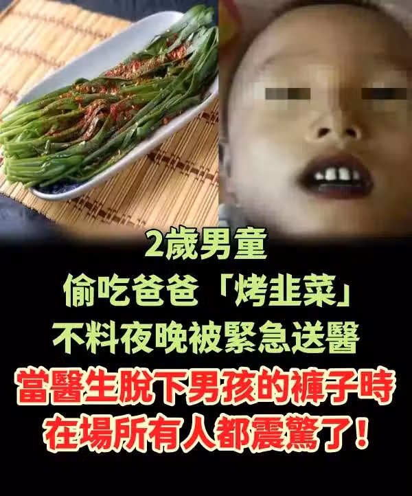 2歲男童夜裡偷吃爸爸「烤韭菜」,不料夜晚被緊急送醫,當醫生脫下男孩的褲子時......在場的所有人都震驚了!