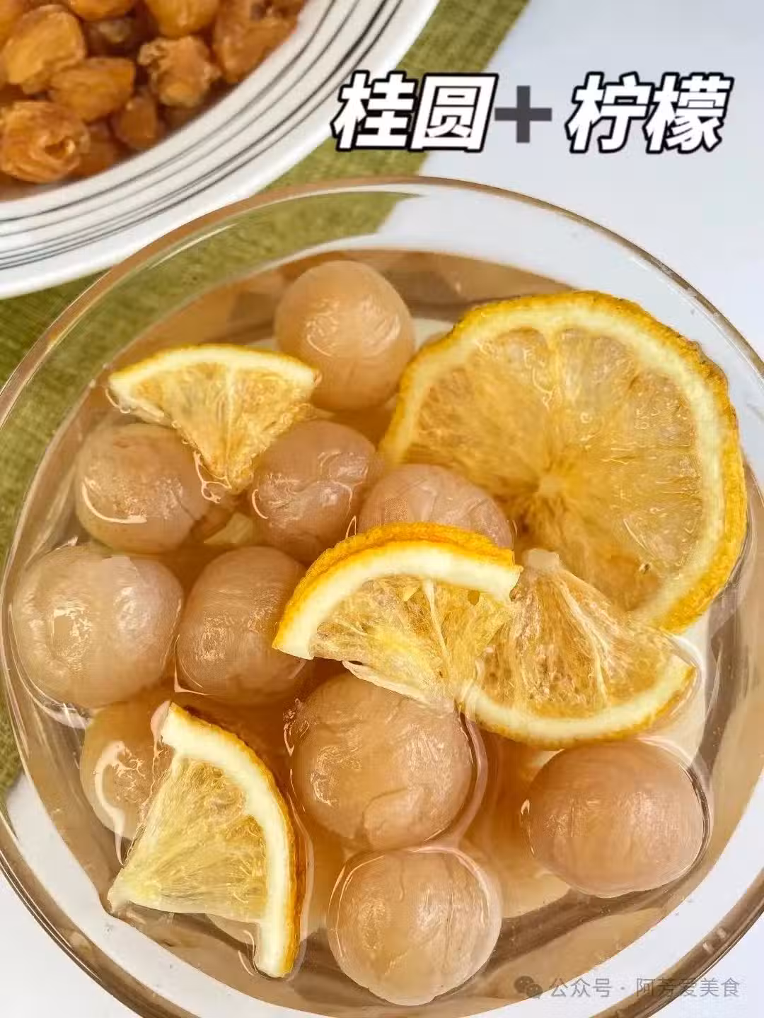 桂圓和檸檬,酸酸甜甜的好喝極了當飲料喝也不錯的。不過要注意,檸檬要去籽!不然時間久了,會發苦的!