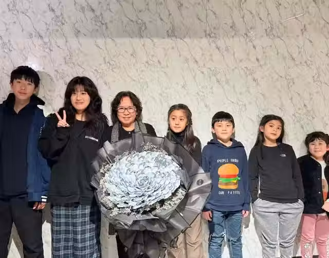 還有一張是賈媽媽與孫子孫女們的合照,照片中賈靜雯的三個女兒還有弟弟家的三個孩子都出鏡了。不得不說,相貌比弟弟好看很多的賈靜雯生的三個女兒比弟弟家的孩子也要好看很多。