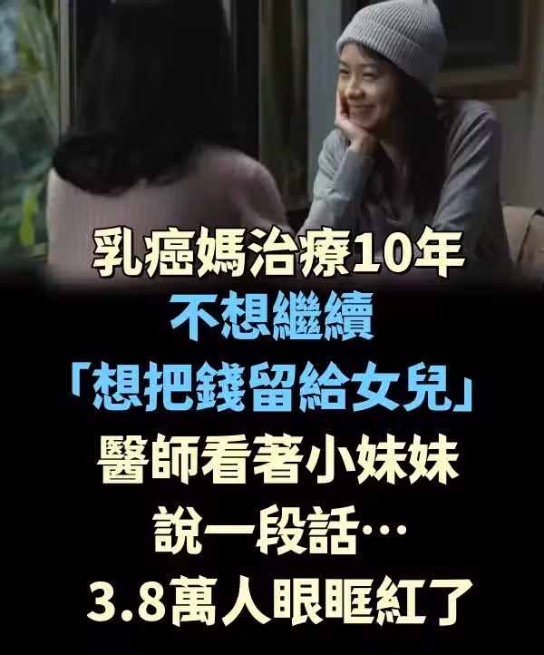 乳癌媽治療10年不想繼續「想把錢留給女兒」 醫師看著小妹妹說一段話…3.8萬人眼眶紅了