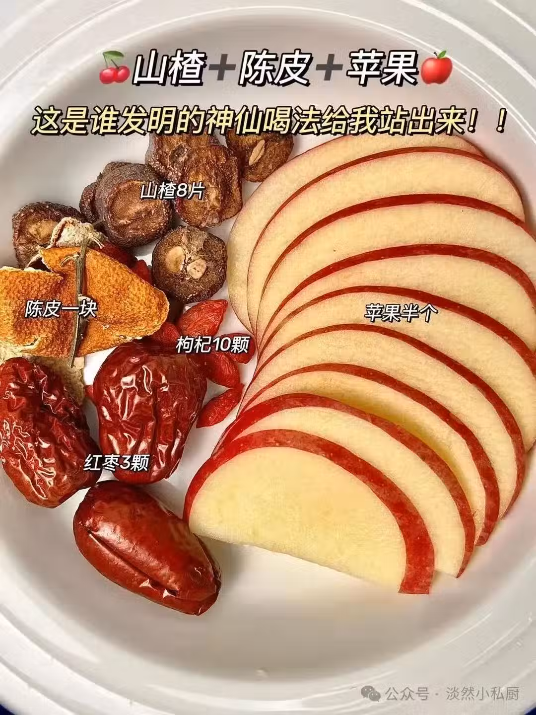 宿便中的毒素如果被腸道反覆吸收,通過血液循環到達人體的各個部位,可能導致面色晦暗無光、皮膚粗糙、痤瘡等問題。 減肥並不僅僅是為了追求外表的美觀,儘管改善外觀是很多人減肥的動機之一。更為重要的是,減肥對於改善健康狀況具有顯著的意義。 食材:蘋果半個、陳皮一片、紅棗3顆、枸杞10顆、山楂8片 做法:蘋果切片,所有食材放入養生壺煮20分鐘即可。