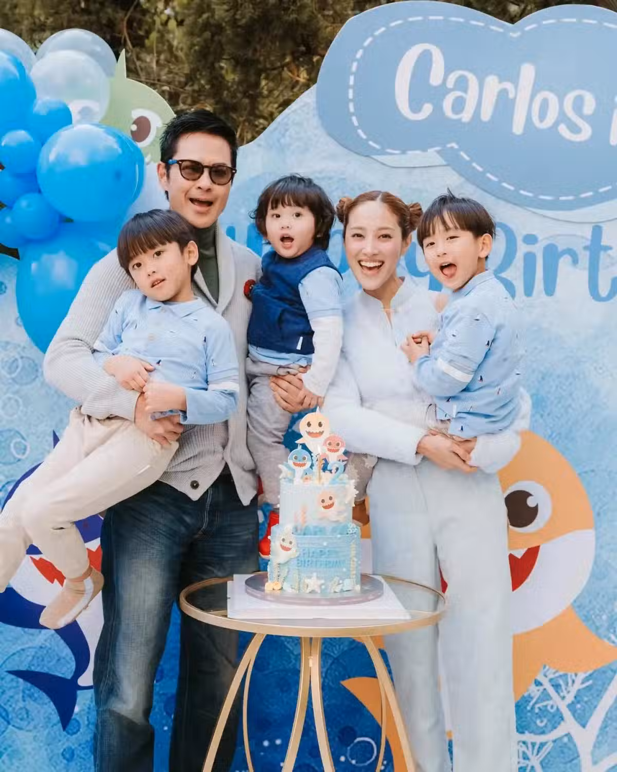 1月13日晚,鄭嘉穎陳凱琳夫婦倆在社交平台曬出為三胎小兒子Carlos慶祝2歲生日的照片,一家五口同框畫面溫馨有愛。三個兒子顏值好高。