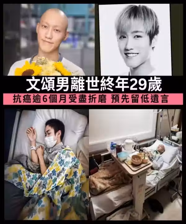 香港男星文頌男 (Koba) 去年10月因身體不適就醫,經醫師檢查,在他椎間近盤骨附近發現惡性腫瘤且壓住神經,確診罕見癌症「尤文氏肉瘤」,之後入院治療,先前消失一段時間,怎料7月13日由家屬在IG發文,公布其死訊,得年29歲。