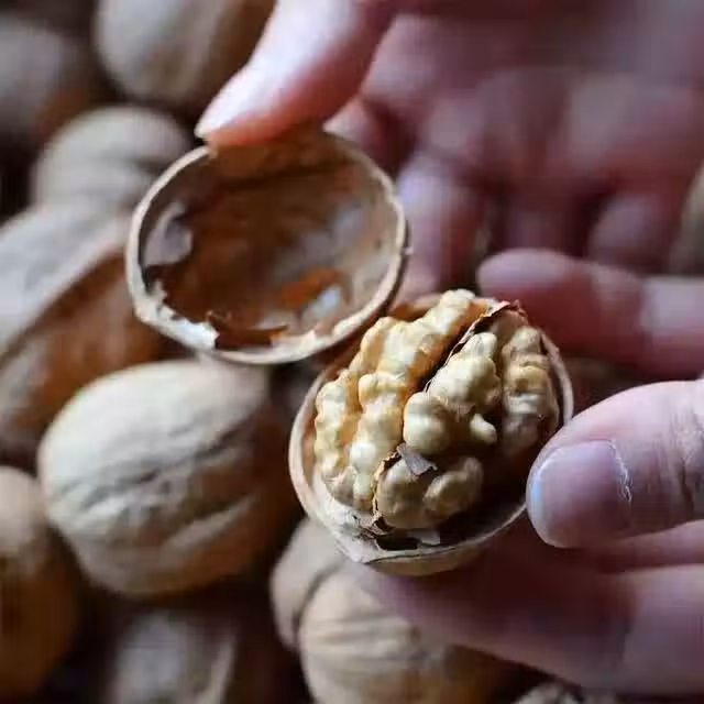 不要選擇色澤特別鮮艷,發白,特別整潔的核桃,且核桃皮厚薄不均有很多裂縫,兩頭還有出氣孔。