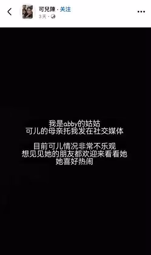 陳可兒是在2021年診斷患上子宮頸癌第三期,當時接受治療後,情況受控並定期複診;2024年6月,突然無法行走後,證實癌細胞已擴散。