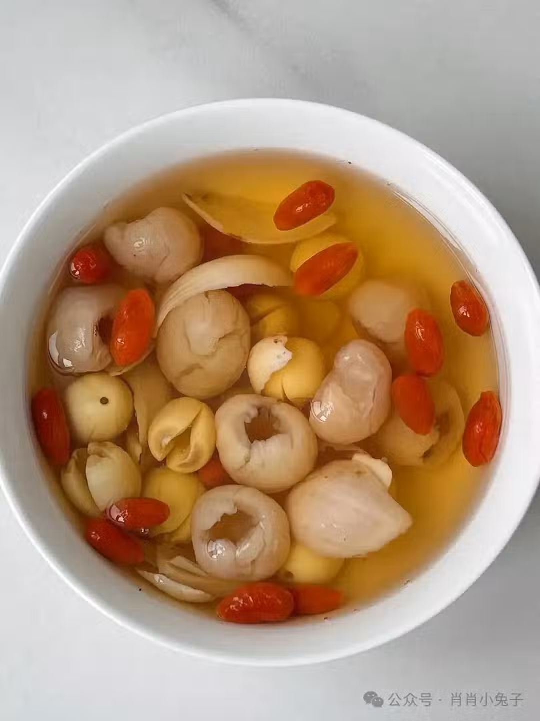 1.所有食材煮沸後加枸杞悶5分鐘就可以了,喜歡甜一點的也可以加點冰糖。