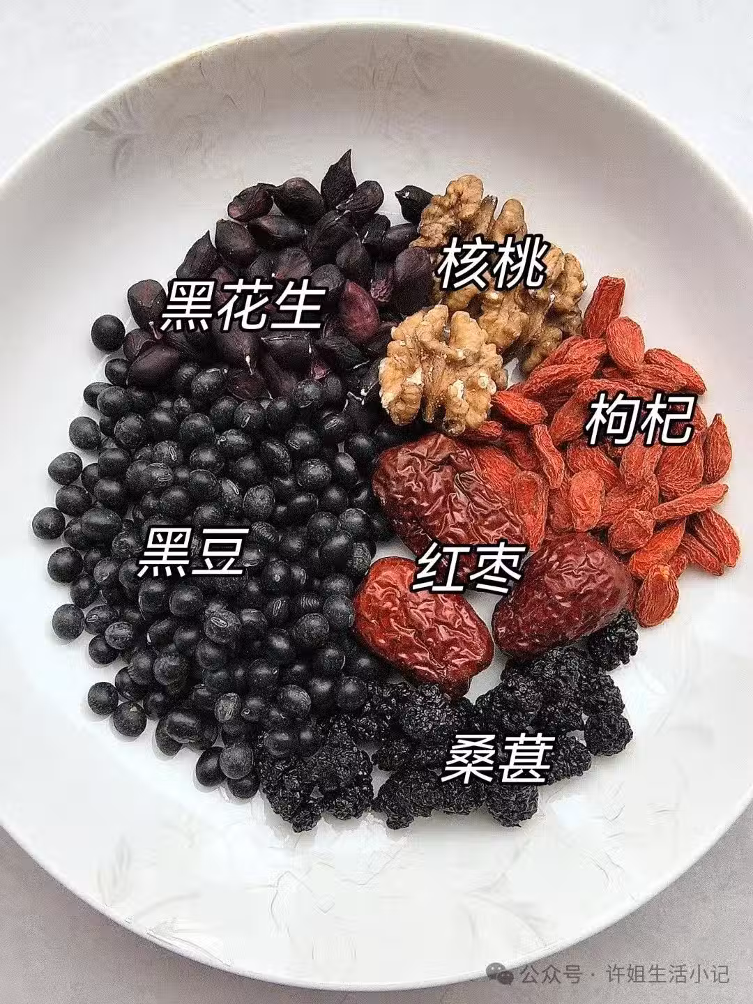 7、失眠多夢 中醫爺爺推薦了這款補充腎氣的湯水! 黑色入腎,黑豆補腎水,桑葚,黑花生更是補腎佳品。 加上核桃紅棗枸杞,把氣血也補足了! 食材:黑豆、桑葚、黑花生或紅花生、核桃、枸杞各一把,紅棗3-4顆 做法:黑豆、黑花生提前浸泡半小時,其他食材洗凈,所有食材一起放入燉盅,加水燉2小時左右。 也可以用電飯煲或電壓力鍋的煮粥功能來煮,也很方便,因人而異可放少許冰糖或紅糖調味。
