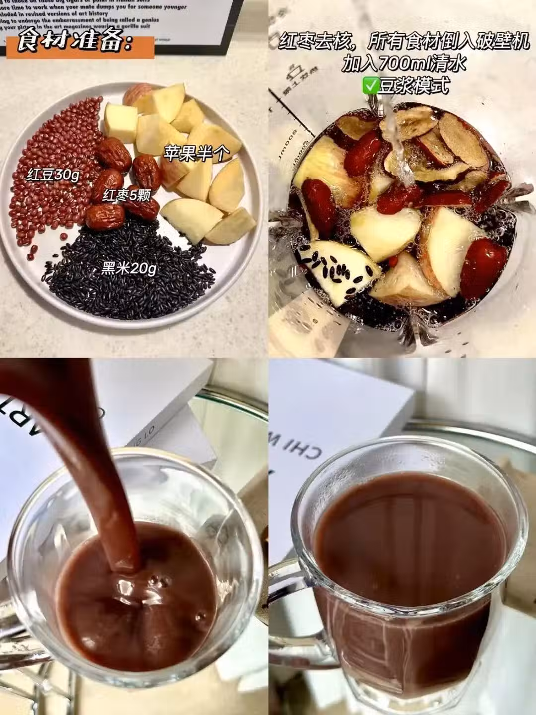 • 選擇豆漿模式,等待豆漿製作完成後,就可以享受到這杯美味又營養的蘋果黑米紅豆漿了。它口感豐富,既有水果的清甜,又有穀物的醇厚,每天喝一杯,輕鬆養出好肝臟和好容顏。