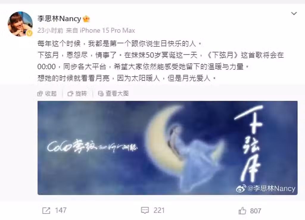 早在儀式開始之前,其實李思林就在凌晨的時候發文稱每年這個時候,我都是第一個跟人留著生日快樂的人。