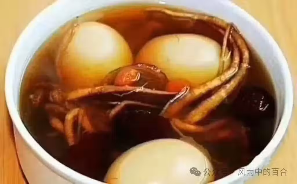 【食材】:當歸10g,益母草15g、香附10g、田七5g,雞蛋3個。