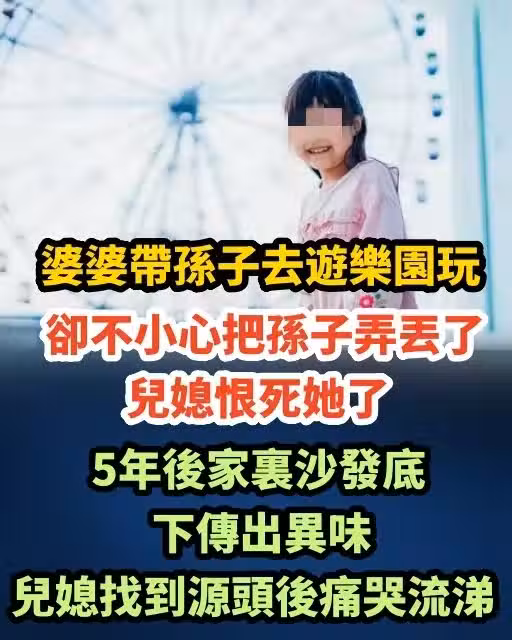 外婆帶孫子去遊樂園玩,卻不小心把孫子弄丟了,兒媳恨死她了,5年後家裡沙發底下傳出異味,兒媳找到源頭後痛哭流涕