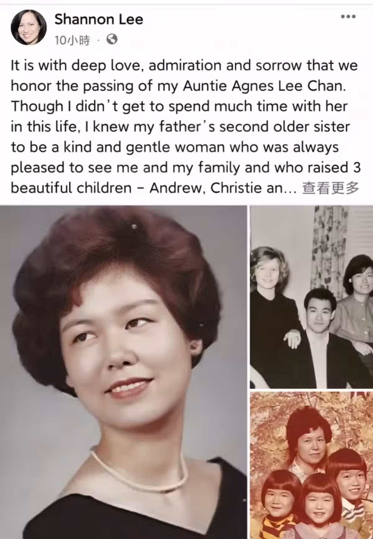 突傳死訊!功夫巨星李小龍二姐李秋鳳離世,姐弟倆五官輪廓相似