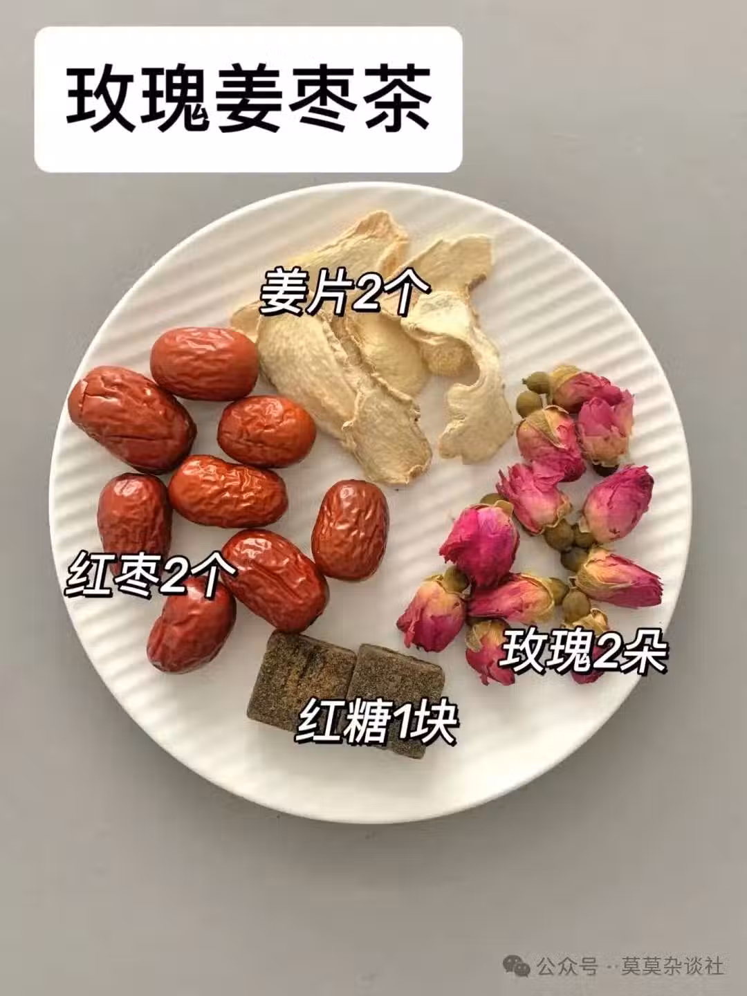 食材: 紅棗 | 玫瑰 | 薑片 | 紅糖