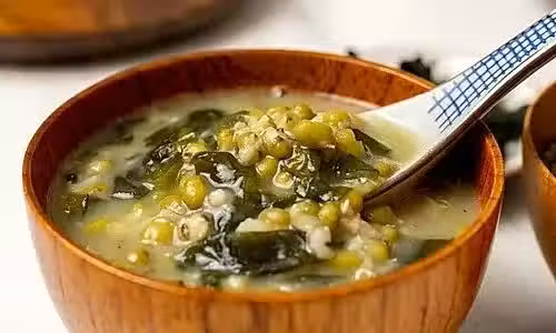 用薏苡仁、枸杞子、桃仁各15克,海帶、甜杏仁各10克、綠豆20克、粳米80克。將桃仁、甜杏仁用紗布包紮好,水煎取汁,加入薏苡仁、海帶末、枸杞子、粳米一同煮粥。每日2次,具有清熱解毒、清火消炎、活血化瘀、養陰潤膚之功效。