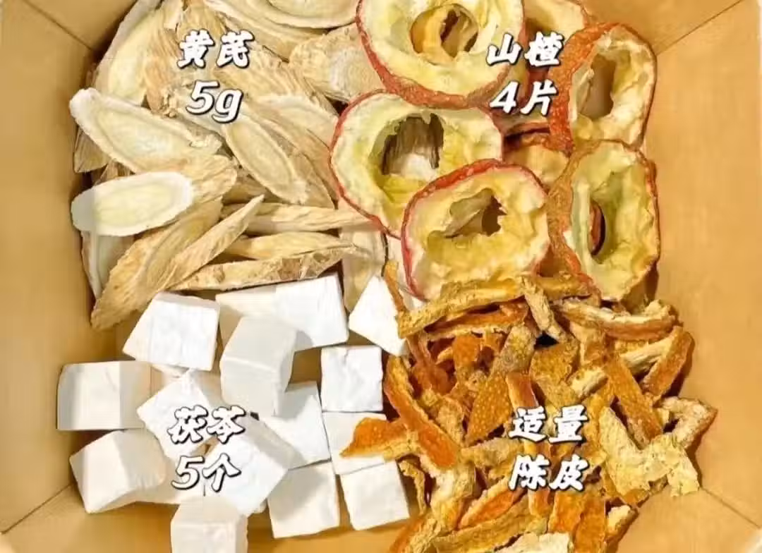③蘋果黃芪姜棗水:這款蘋果黃芪生薑紅棗水很適合臉色沒起色,氣虛犯困,脾胃不好,姨媽期肚子不適的人多喝,因為黃芪可以幫助補氣,能增強免疫力,蘋果富含維生素,可以健脾養胃,而生薑可以驅寒解表,麥冬和紅棗可以滋陰補氣血~ 【做法】:準備好蘋果一個清洗乾淨去核切成小塊,放入鍋中,加入黃芪5g,麥冬5g,紅棗干6片,生薑6片,全部清洗乾淨放入鍋中,加入600毫升的清水大火煮沸,轉小火煮30分鐘即可飲用。