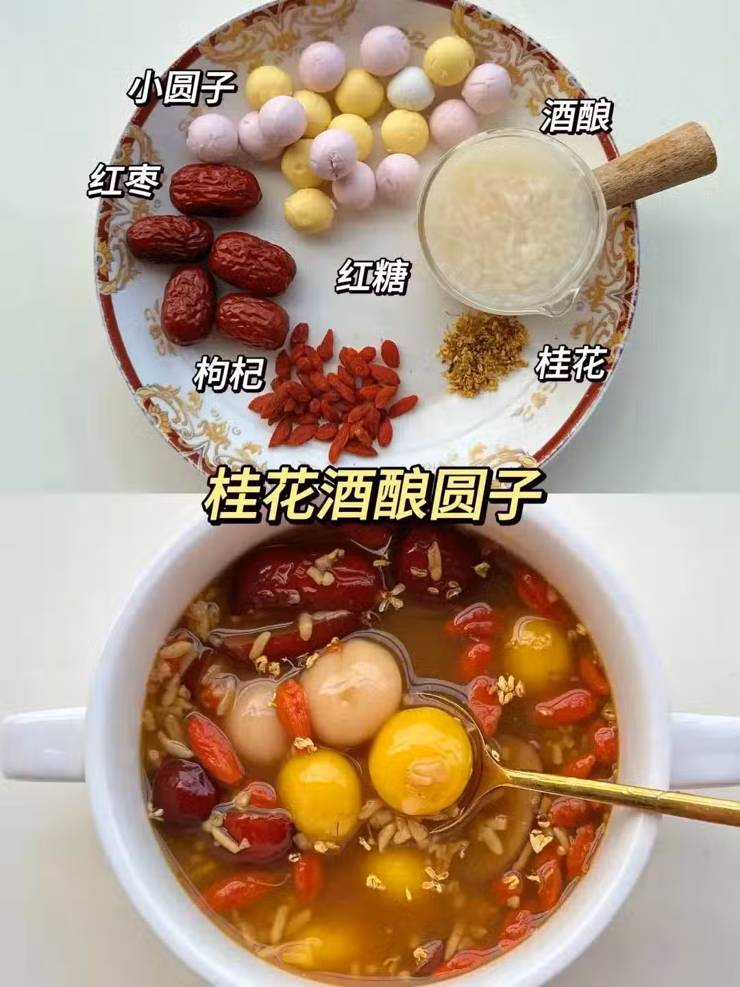 酒釀、桂花、小圓子、紅棗、枸杞、紅糖