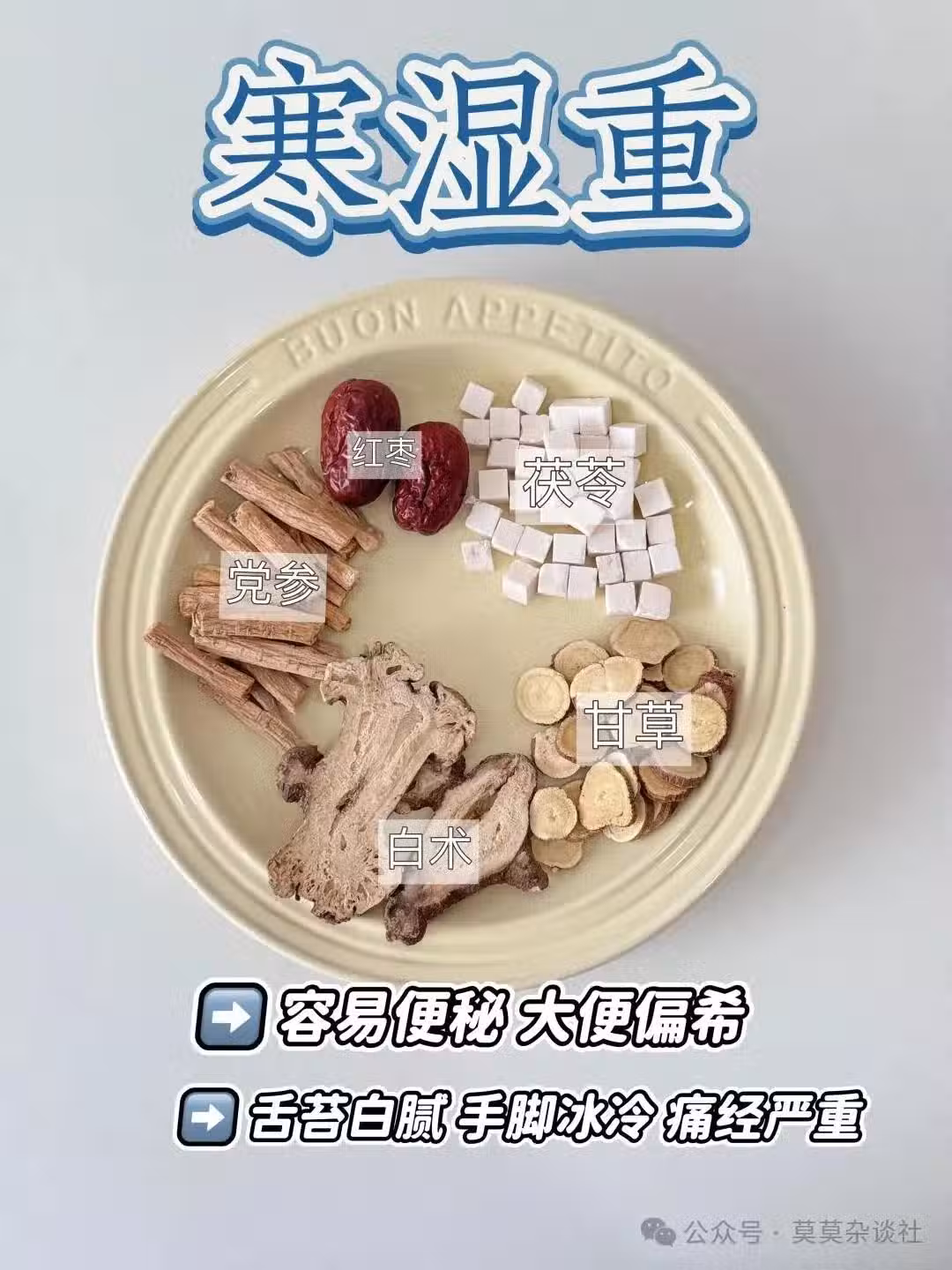 如果你的濕氣表現為手腳冰涼、經常腹瀉、大便不成型,吃點冷的就肚子疼,早上總是睏倦嗜睡,身體還有些浮腫,那多半是寒濕在作怪。