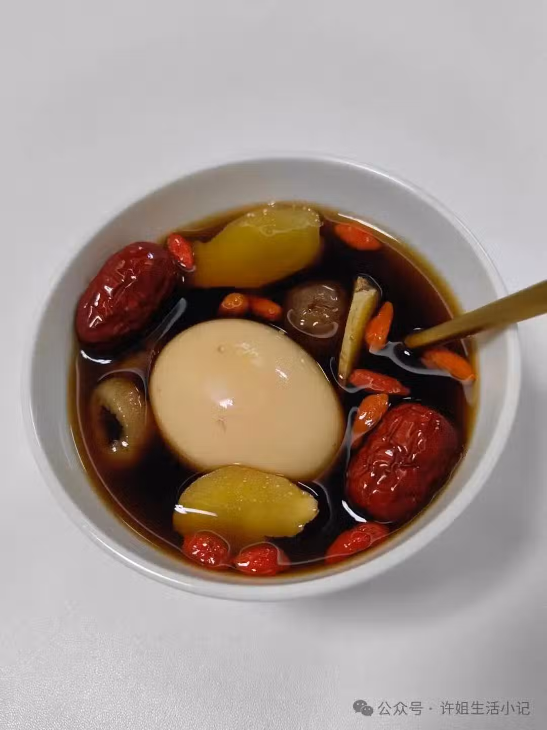 食材:姜、紅棗、桂圓、雞蛋、枸杞、紅糖