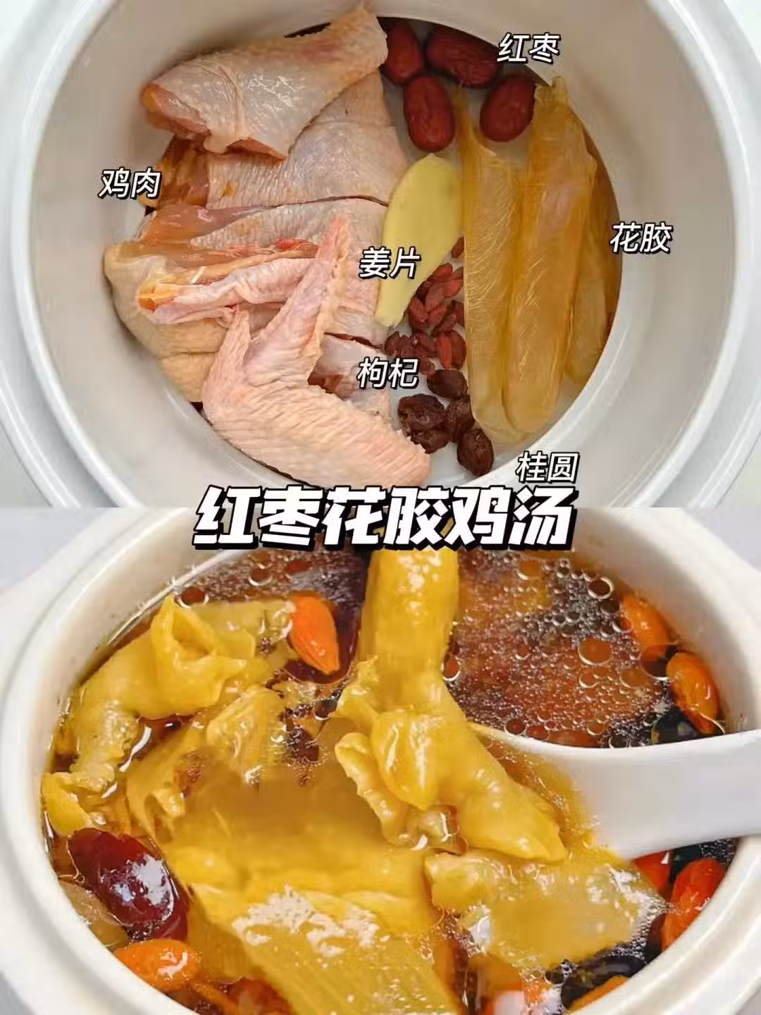 食材準備:雞肉 紅棗 花膠 枸杞 薑片