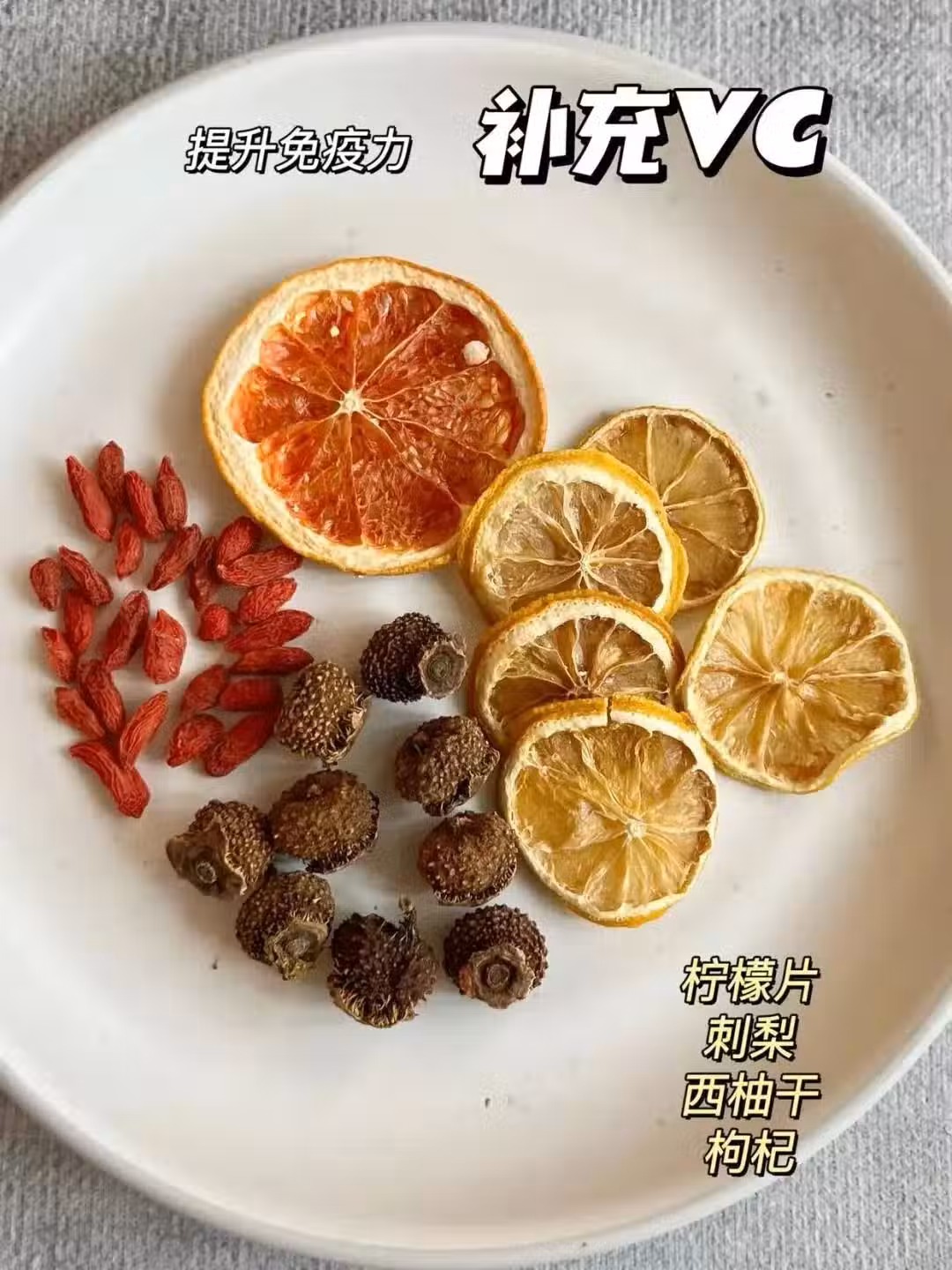 食材準備:檸檬片 刺梨 西柚干 枸杞