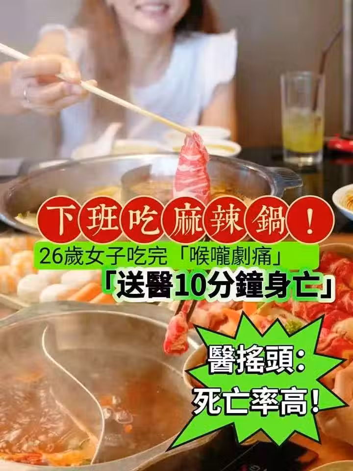 下班吃麻辣鍋!26歲女子吃完「喉嚨劇痛」 「送醫10分鐘身亡」醫搖頭:死亡率高!