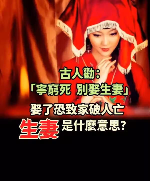 古人苦勸:「寧窮死,別娶生妻」娶了恐致家破人亡!「生妻」是什麼意思