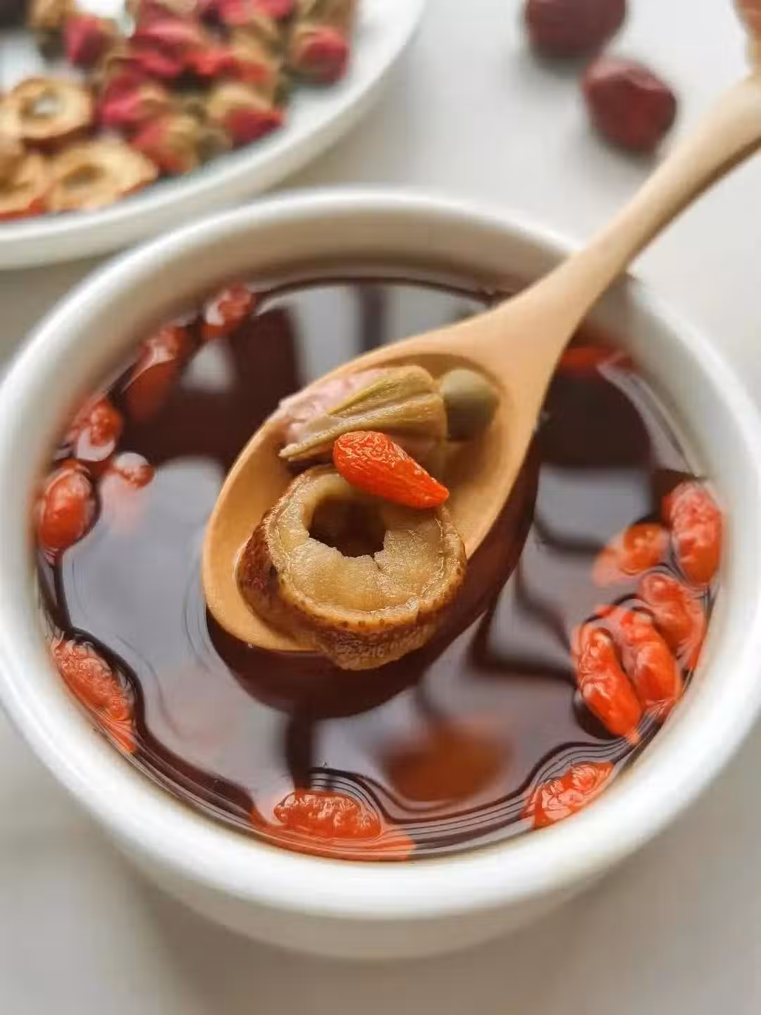 食材:玫瑰花6朵、山楂5個、紅棗適量紅糖一塊枸杞適量