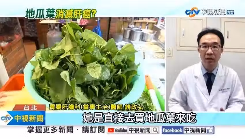 根據《三立新聞》報導,基隆長庚醫院肝膽腸胃科醫師錢政弘日前分享新書時,透露在臨床個案上收治過兩位阿嬤,一位靠「地瓜葉蔬果汁」消除腫瘤,另一位每天吃汆燙過的地瓜葉,不但癌症指數下降,照超音波、核磁共振都證實「腫瘤真的消失」了。