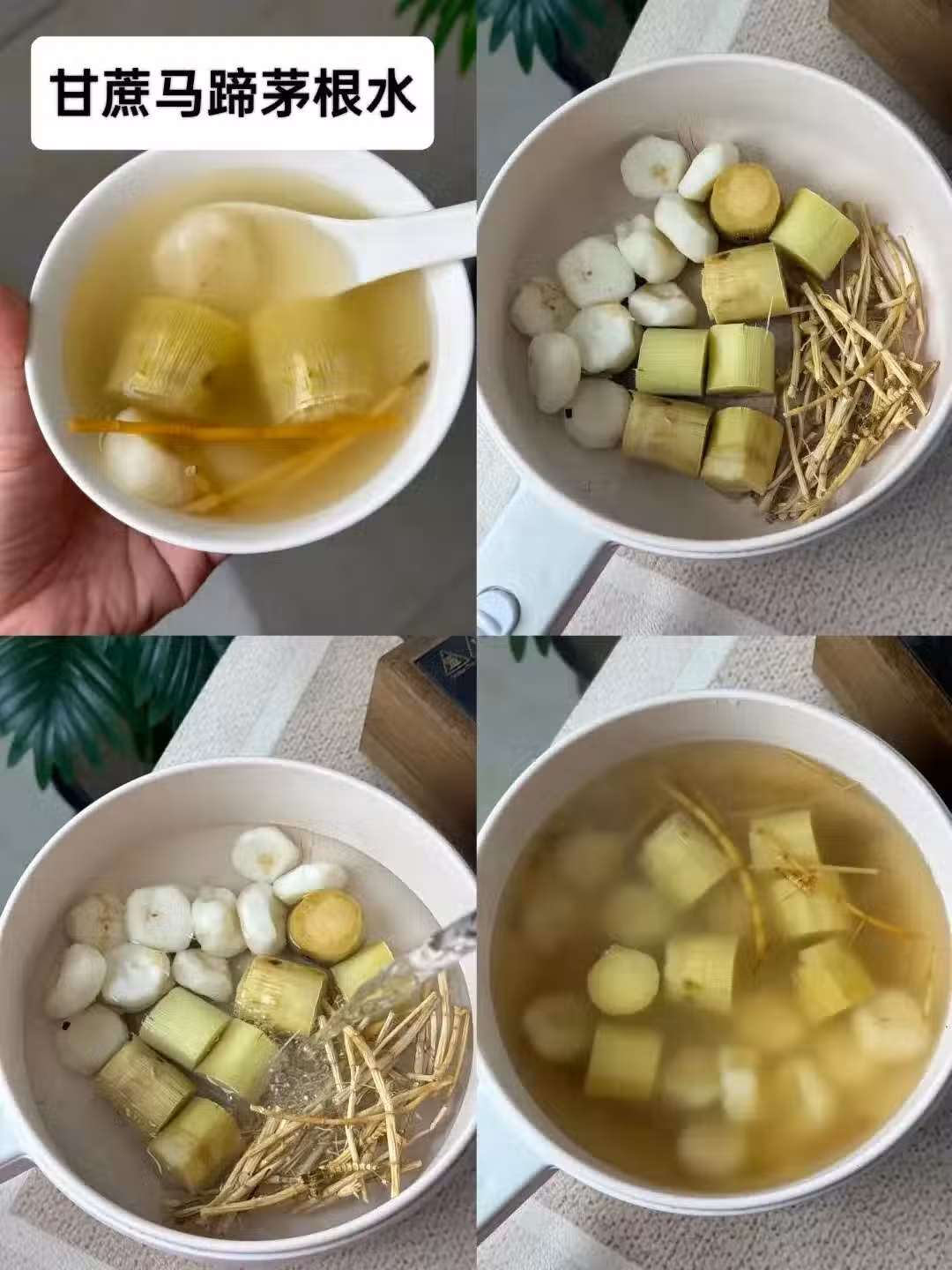 要是沒有茅根,直接甘蔗馬蹄水也是可以的。煮上一鍋滿屋子清甜飄香~