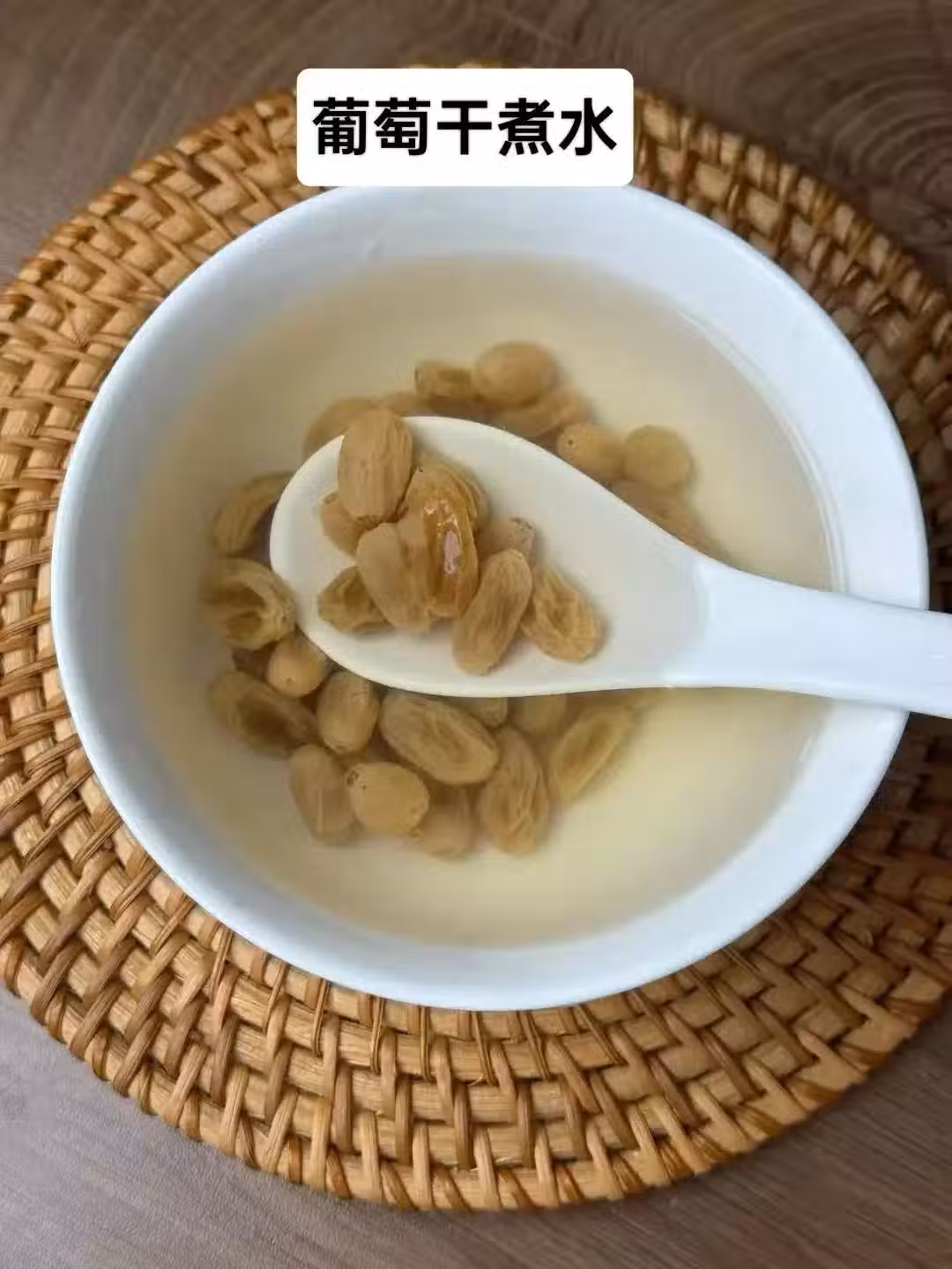 葡萄乾洗乾淨放入養生壺,倒入500ml清水,煮20分鐘喝水就可以了,空腹喝。
