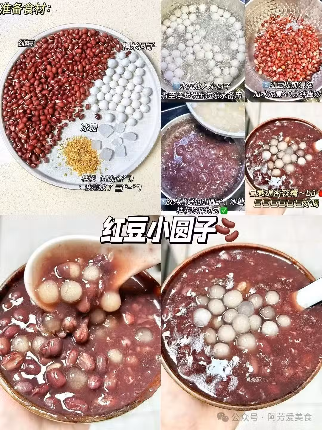 紅豆小圓子簡直是一款非常好喝的甜湯,再加入一些桂花,會更加的香哦,而且喝起來還不會覺得膩,小圓子非常的q彈軟糯!