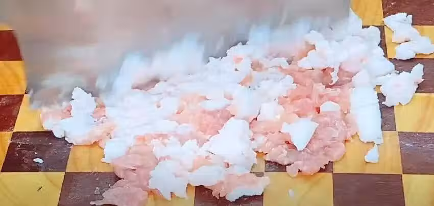 4. 五花肉剁成肉末,切好以後放入碗中;