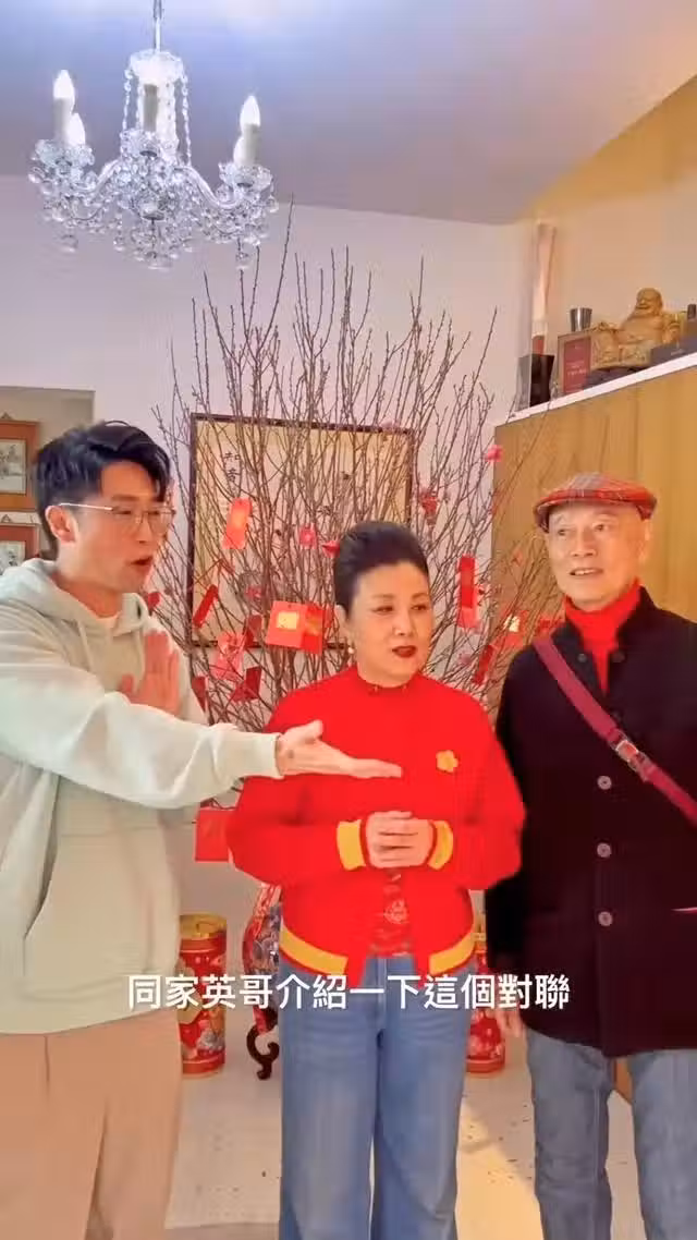影片中可以看到陸浩明與女友陳詩欣分別身穿淺綠色連帽衛衣及淺藍色外套出鏡,興奮地說:「恭喜發財,今年很多人來到阿姐家拜年,我們看一下現在大家在做什麼呢?在排隊,我們在排隊跟阿姐拍照,Fabi恭喜發財。」然後就見到身穿紅色毛毛袖上衣的關禮傑愛女關楓馨出鏡,十分雀躍地手舞足蹈。