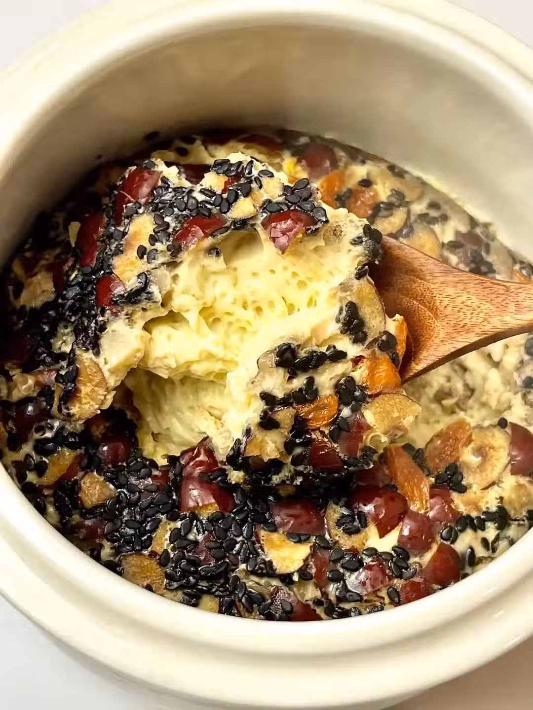 2️⃣2個雞蛋打散,紅棗、核桃仁、熟黑芝麻倒入雞蛋中,攪拌均勻