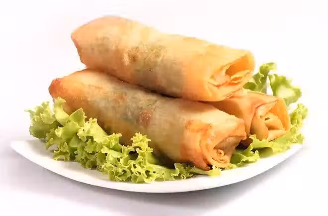 它通常是用薄餅皮包餡捲成筒狀後油炸而成的一種食品。