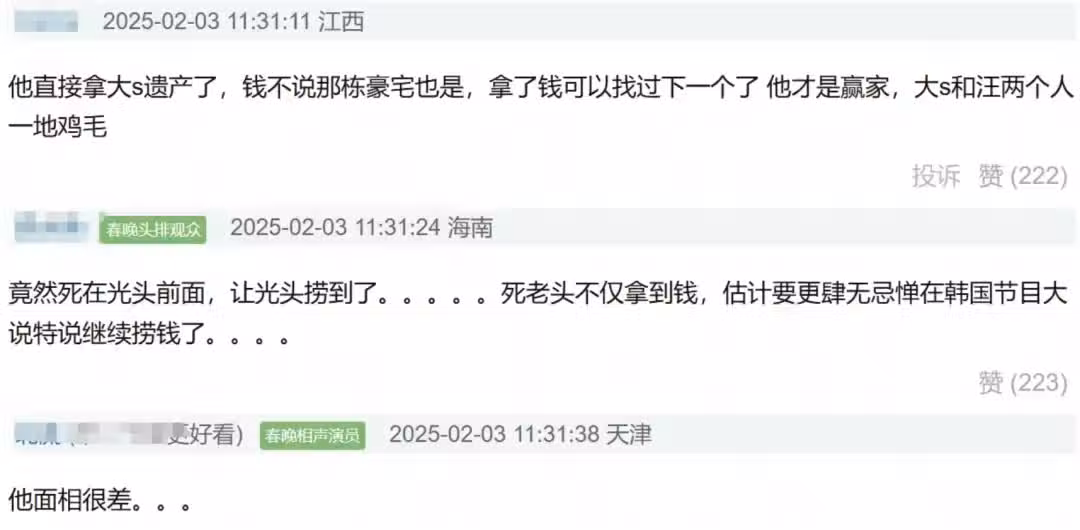 且不說大S三分之一的遺產對於汪小菲來說是多是少,但就像前面說的,如果大S生前沒立遺囑的話,配偶是第一繼承人,具俊曄這個和大S才結婚三年的現任繼承的更多啊。而且還不用養孩子,也不用贍養老人,直接拿了遺產就可以回老家。