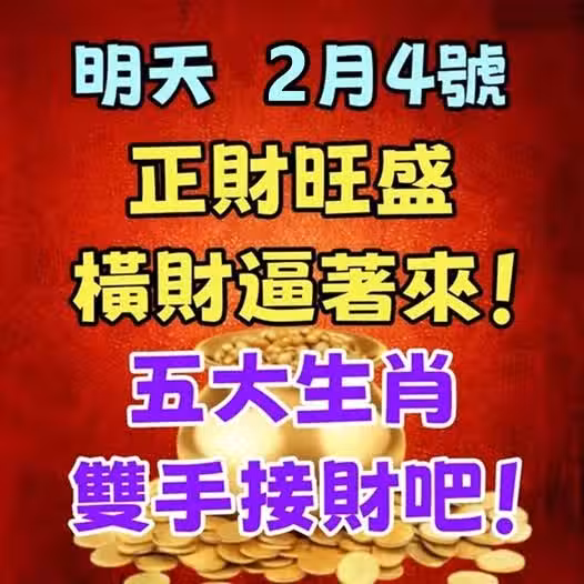 明天2月4號正財旺盛,橫財逼著來!五大生肖雙手接財吧