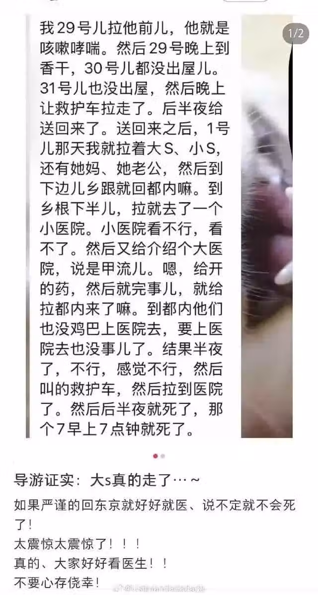 從這名導演的細述中可以看出,大S的病情是被耽誤了。