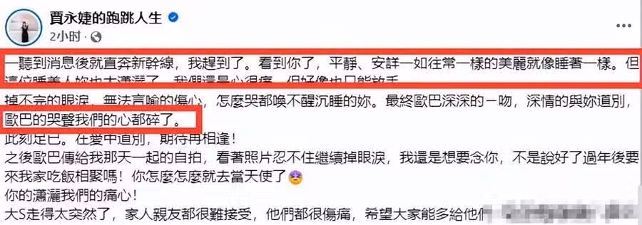 快訊/大S臨終畫面太催淚!好似睡美人,具俊曄不舍吻別,一雙兒女目睹