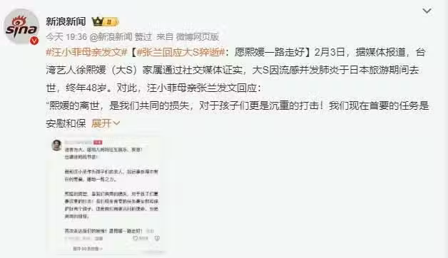 大S媽媽則通過好友王偉忠分享聲明,並曝光大S的最後心愿,以及長達300多字的聲明。