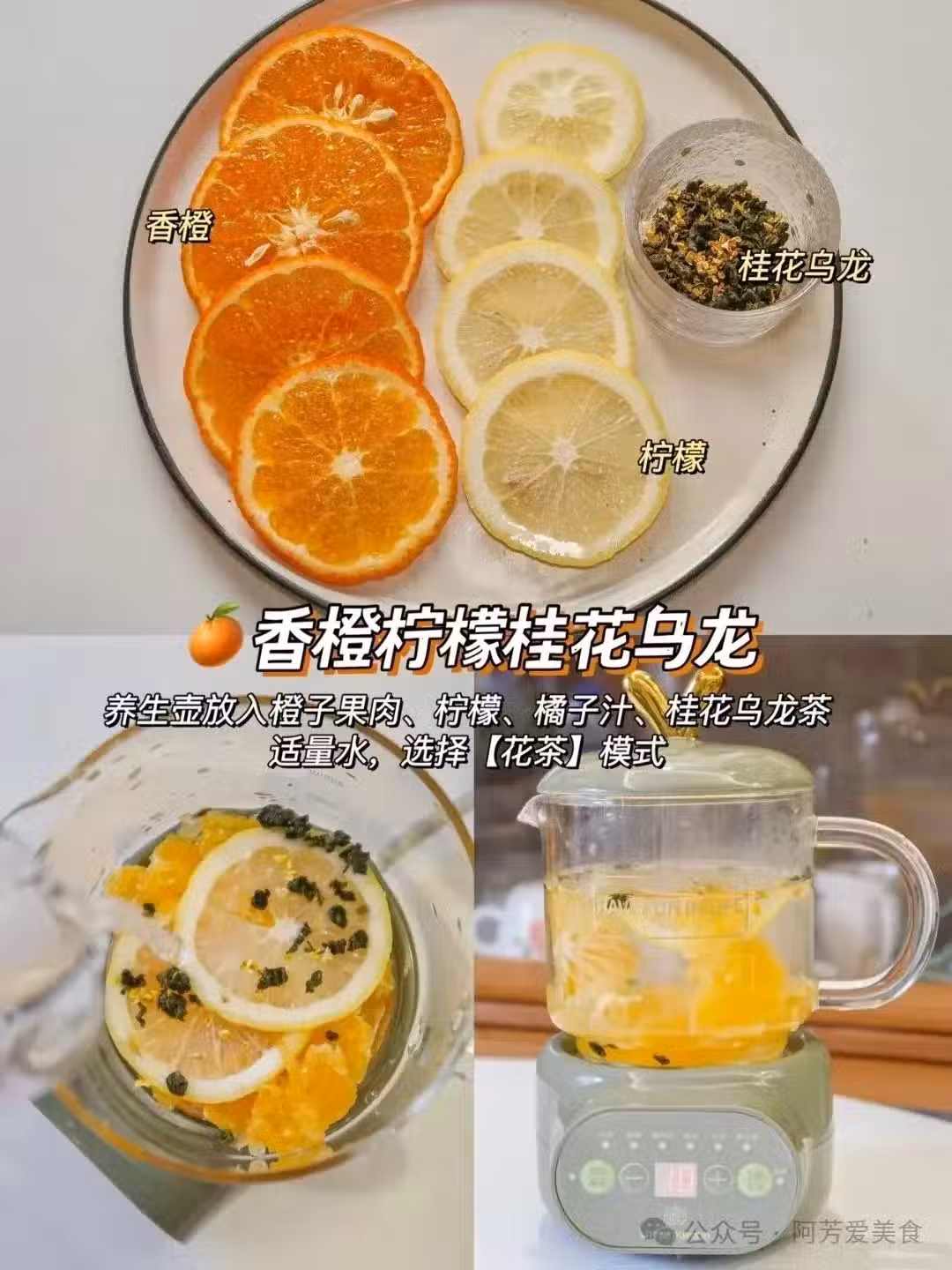 香橙檸檬桂花烏龍這杯也是非常的好喝,橙子的甜味搭配檸檬的一些酸感,記得檸檬要去籽,不然會發苦噢,再加入桂花的花香簡直是解膩神器。