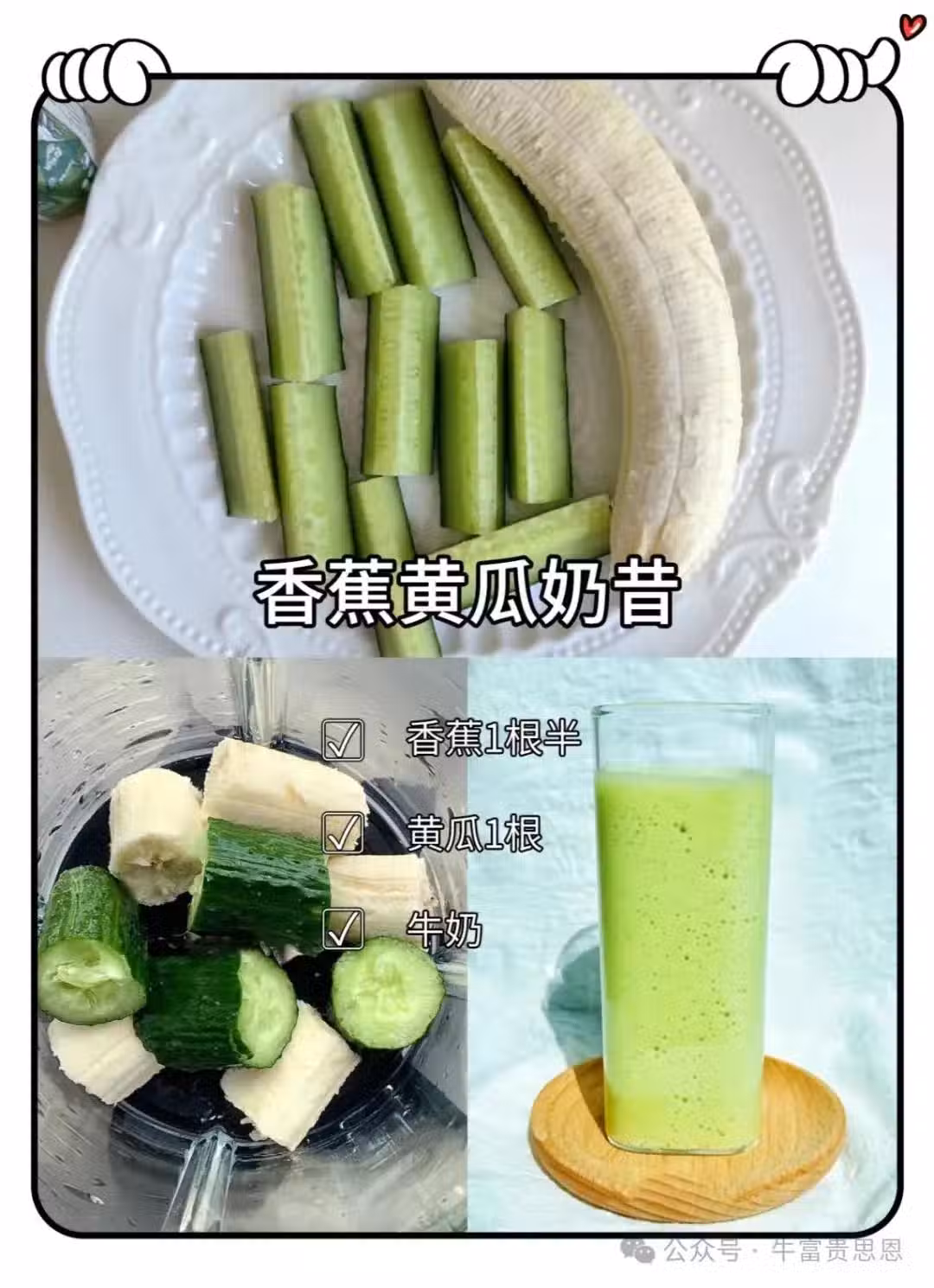 香蕉1根半、黃瓜1根、牛奶適量