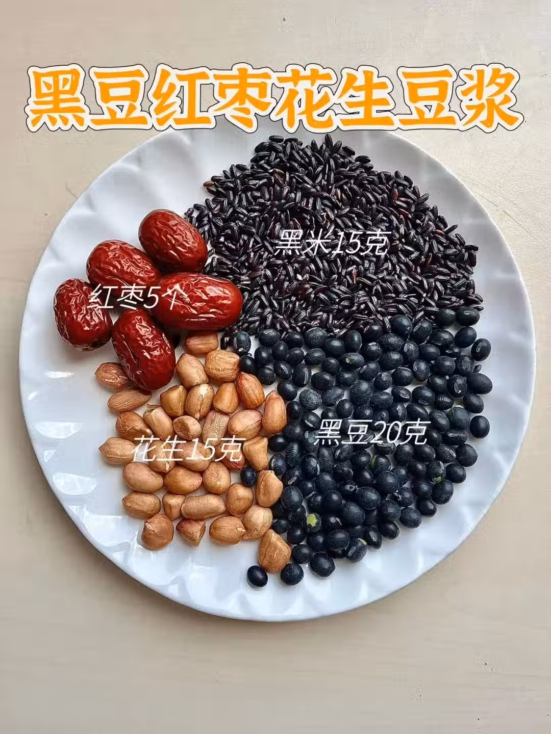 ☑️食材:黑芝麻5g、黑米15g、黃豆10g、黑豆15g
